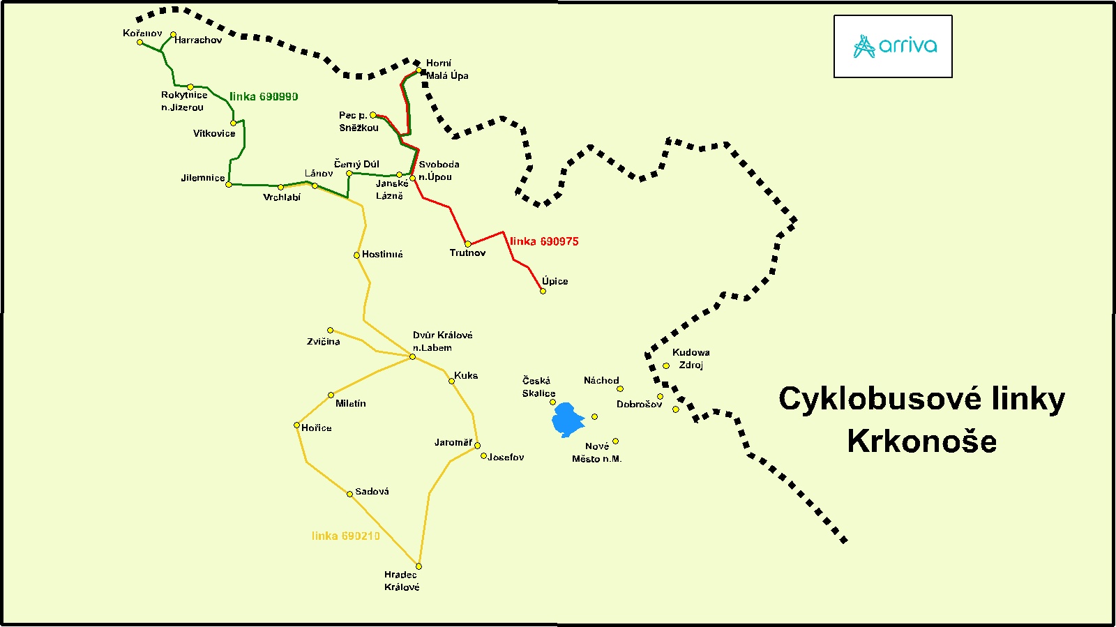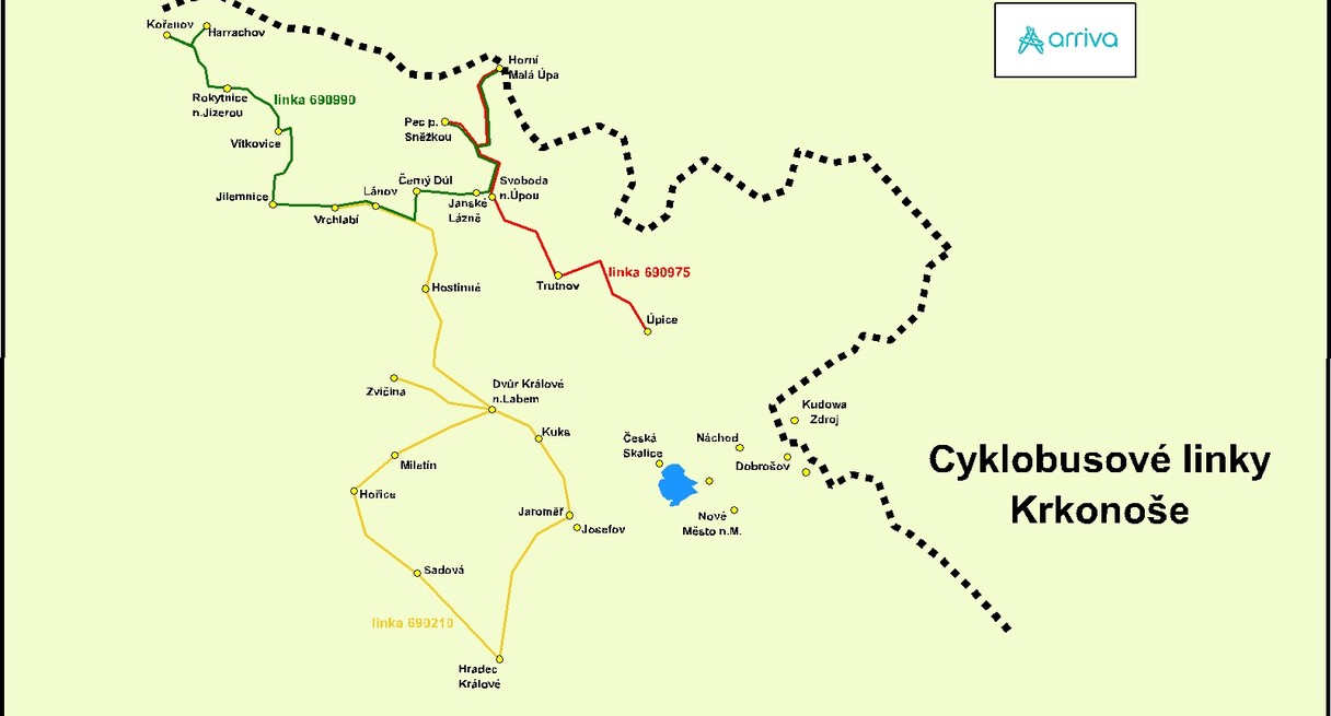 Cyklobusy provozované společností ARRIVA VÝCHODNÍ ČECHY jsou v provozu od 30. 5. 2020. Jejich trasy směřují stejně jako v minulých obdobích na oblíbená místa v Orlických a Železných horách a do Krkonoš.