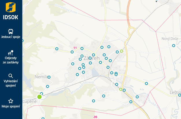 - vidíte polohu všech autobusů IDSOK v reálném čase