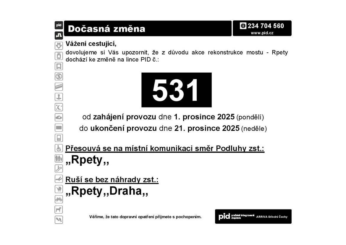 Berounsko: Oprava mostu ruší a přesouvá na lince PID 531 zastávky v obci Rpety
