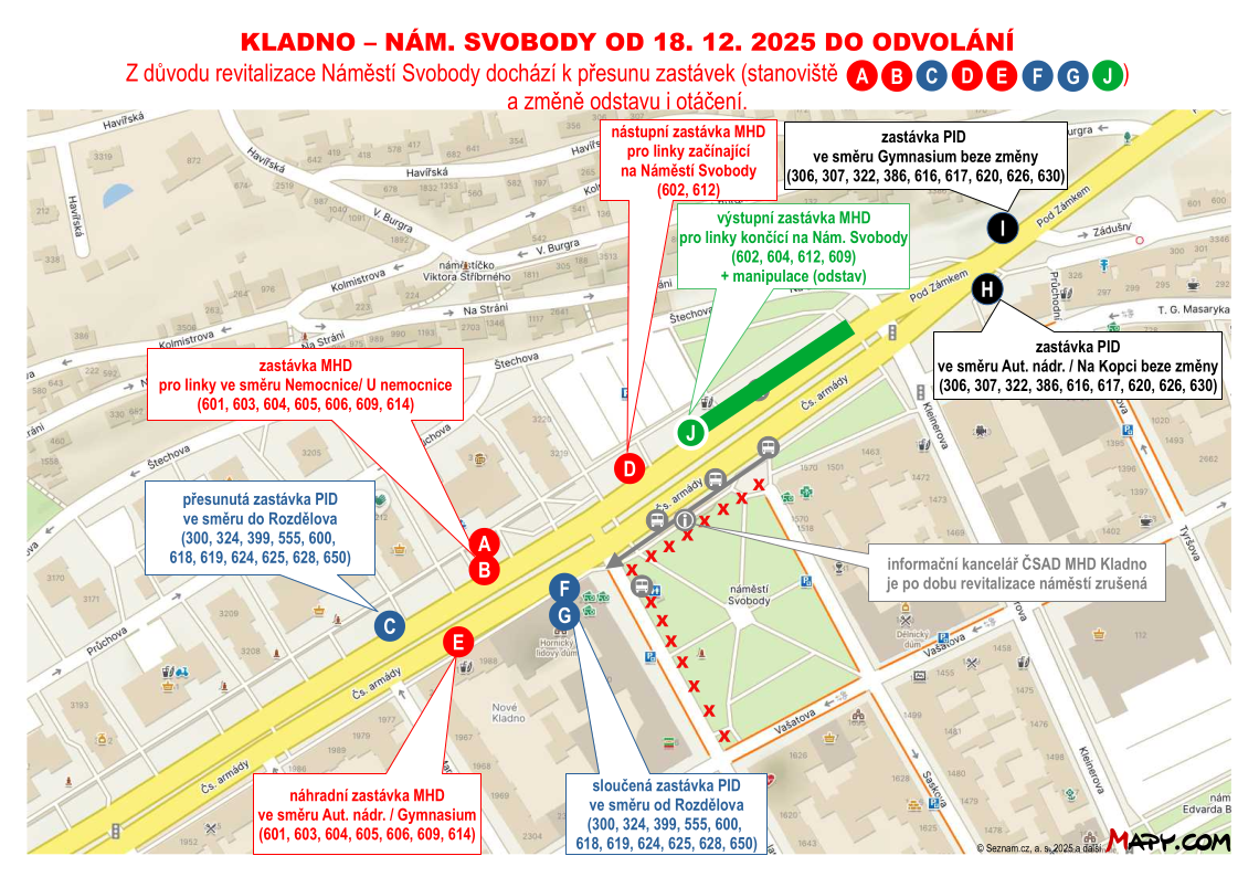Kladno: Dočasný přesun stanovišť zastávek v okolí náměstí Svobody