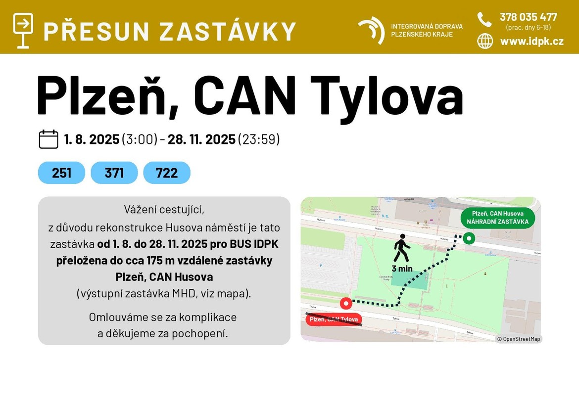 Plzeňský kraj: Oprava Husova náměstí v Plzni přesouvá zastávku CAN Tylova