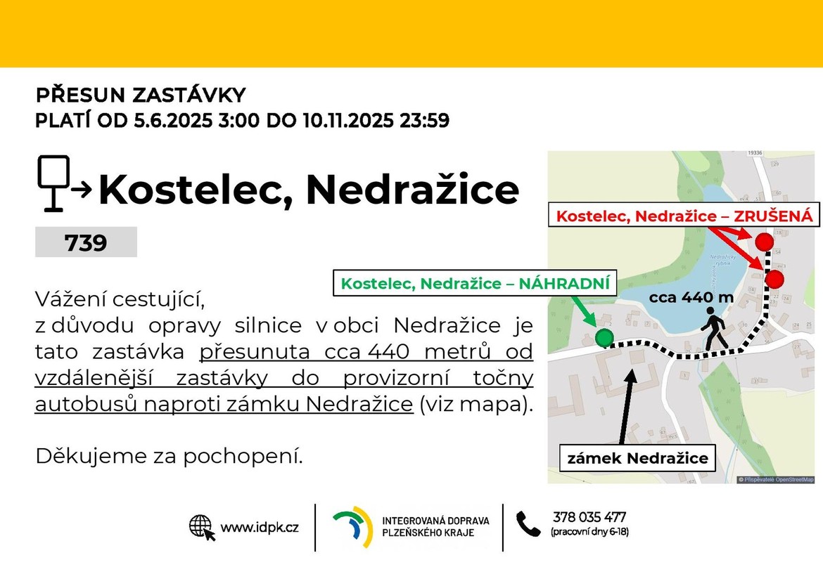 Polohu autobusů můžete zjistit v naší on-line mapě. V případě dalších dotazů kontaktuje infolinku IDPK 378 035 477. Děkujeme za pochopení.