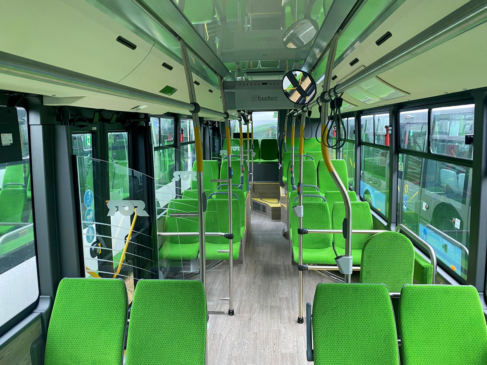 Interiér nových autobusů je převážně zelený, v této barvě jsou sedadla, podlaha a část obložení je v dekoru dřeva, podhledy jsou bílé, což působí příjemně domácky, čistě a svěže. Sedačky jsou navíc v antibakteriální úpravě a voděodolné. Ve vozech se bude v zimních i horkých měsících lépe udržovat optimální teplota, protože dveře se budou otevírat jen v případě požadavku cestujících a zabrání se tak zbytečným tepelným ztrátám. U středních dveří je navíc manuální výklopná plošina pro cestující na invalidním vozíku.