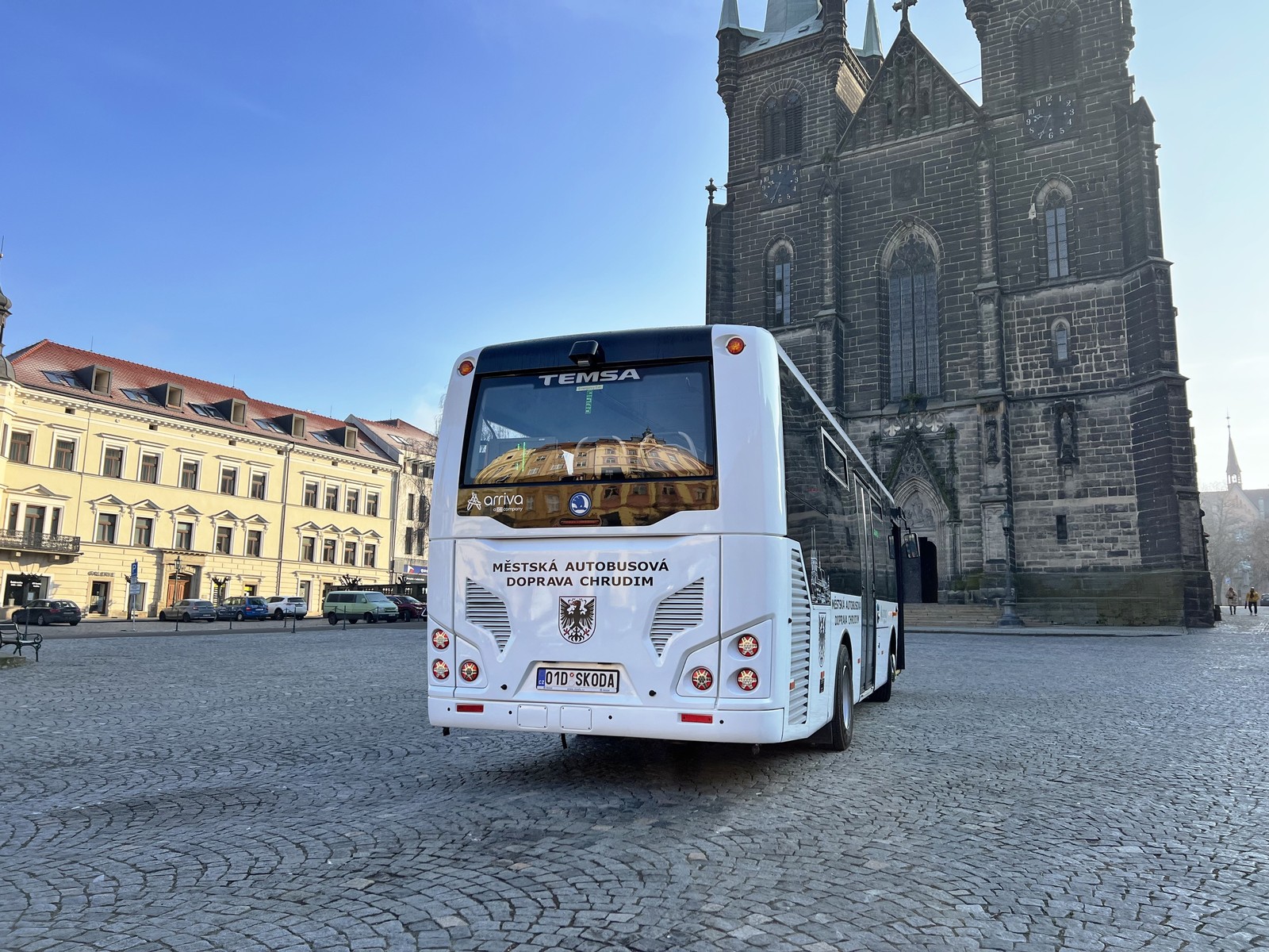 Zánovní bílý autobus s výraznými polepy chrudimské městské dopravy vozí cestující na všech zdejších linkách, nejčastěji je ale do cíle doveze na linkách 1 a 3, kromě centra města obsluhuje třetí linka i Markovice. Autobus jsme slavnostně se zástupci města uvedli do provozu v úterý 7. února.