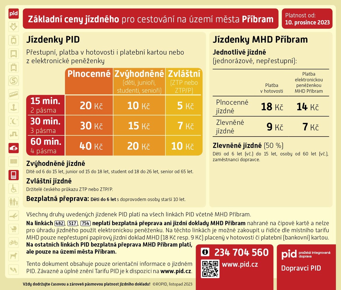 Kvůli integraci MHD Příbram do systému PID jsou přejmenovány vybrané zastávky i pro regionální linky PID na Příbramsku. Linka 419 na trase Příbram – Solenice – Milevsko bude jezdit pod novým číslem 480. Vybrané spoje linky 531 Hořovice – Příbram budou končit v zastávce Příbram, Archiv a na Zdaboř nepojedou a linka 754 mezi Benešovem a Příbramí bude mít všechny zastávky v okrese Benešov nově na znamení.