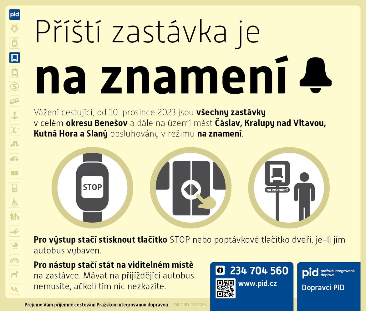 Mění se také jízdní řády námi provozovaných linek PID na Čáslavsku a Kutnohorsku, kde jsou větší změny hlavně v Kutné Hoře kvůli požadavkům města. Znamení řidiči budou muset dávat při nástupu nebo výstupu cestující na zastávkách po Čáslavi i Kutné Hoře nebo v okrese Benešov, kde budou všechny zastávky i pro naše linky na znamení.