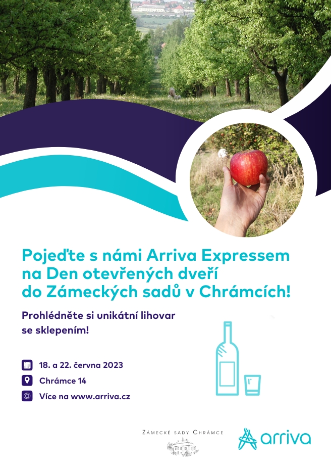 Pokud na dny otevřených dveří míříte, chcete si prohlédnout unikátní lihovar se sklepením a zjistit víc o zdejších sadech, kde je hlavním druhem pěstovaného ovoce hruška, můžete využít i našich pravidelných spojů Arriva Expressu, 18. a 22. června odjíždí z autobusového terminálu Praha, Nádraží Holešovice v 10:45 a 12:45, na místě jste za hodinu a čtvrt. Zpět z Chrámců od zámeckých sadů do hlavního města odjíždí naše autobusy v 15:13, 16:13 a 18:13. Jízdenku si můžete koupit za výhodnou cenu v našem e-shopu.