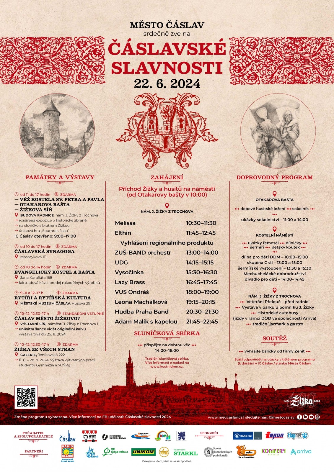 V Čáslavi to bude v sobotu 22. června žít. Město pořádá Čáslavské slavnosti, při kterých se většinou zdarma otevřou zdejší památky a výstavy. Dorazí také Jan Žižka se svými husity a čeká na vás nefalšované husitské ležení, ukázky řemesel, šermíři a další dobrodružství. Na takové akci nemůže chybět ani dobré jídlo a pití nebo muzika, těšit se můžete namátkou na UDG, Leonu Machálkovou nebo Adama Malíka s kapelou.