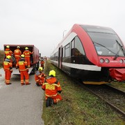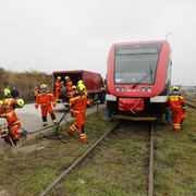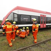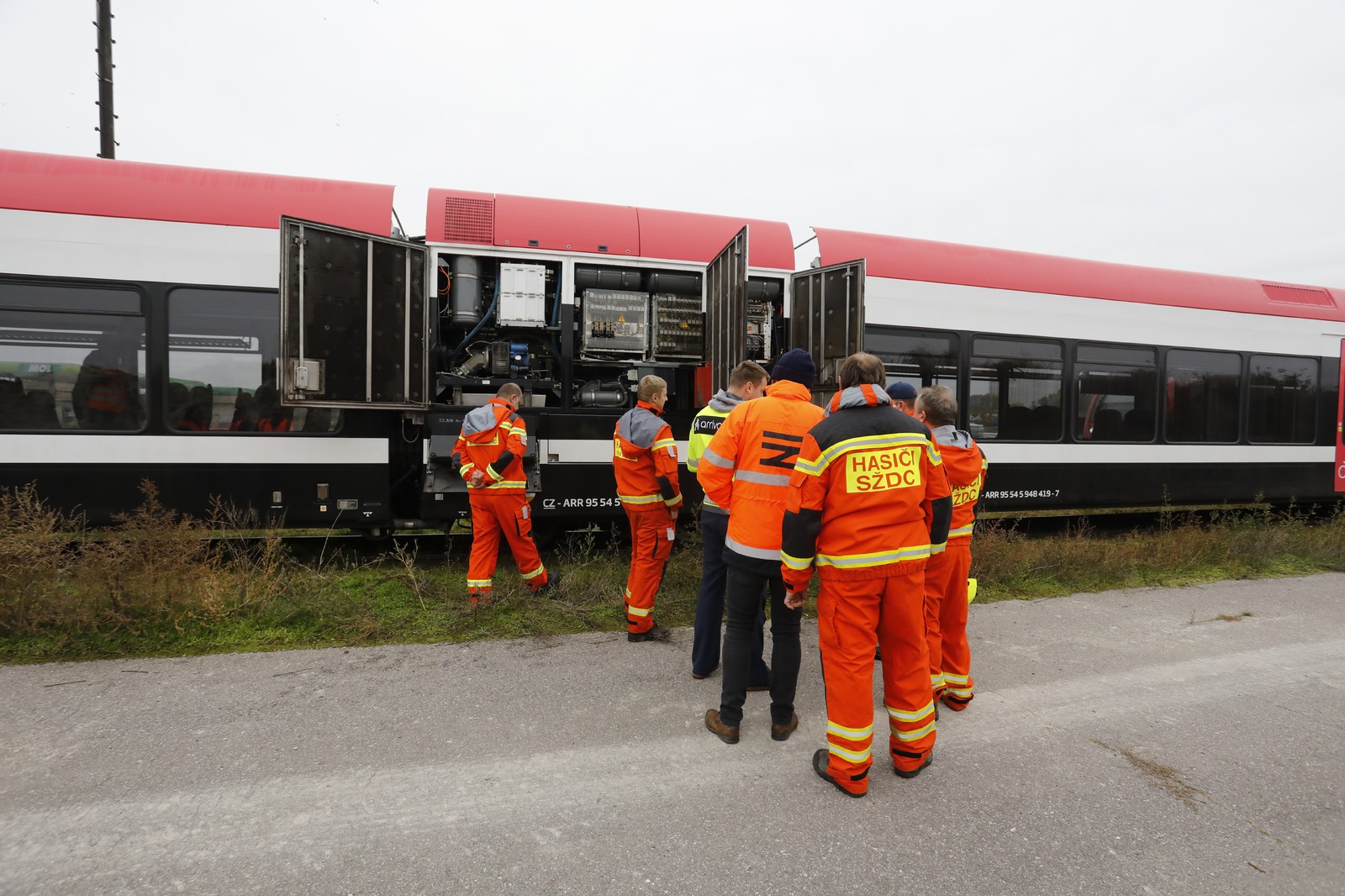 Hasiči, strojvedoucí, provozní zaměstnanci a dvě vlakové jednotky Stadler GTW s označením 848.4, to byli hlavní hrdinové příběhu, který se odehrál na vlečce agrodružstva v Hrušovanech nad Jevišovkou. Hasiči Správy železnic a hasiči z Hasičského záchranného sboru České republiky se tady seznámili s našimi 66 tun těžkými a 39 metrů dlouhými vlaky, s nimiž budeme od poloviny prosince jezdit v Jihomoravském kraji na třech linkách. Nebude jen u dvou, provoz tady zajistí 13 těchto našich vlaků.