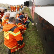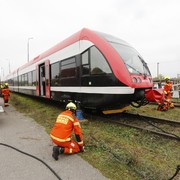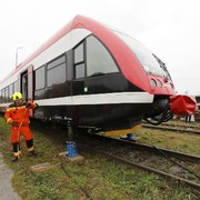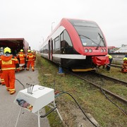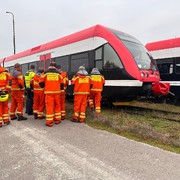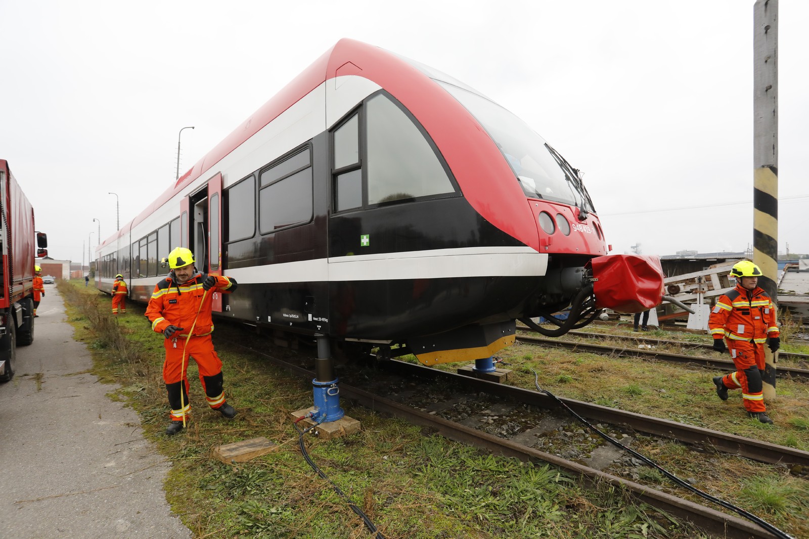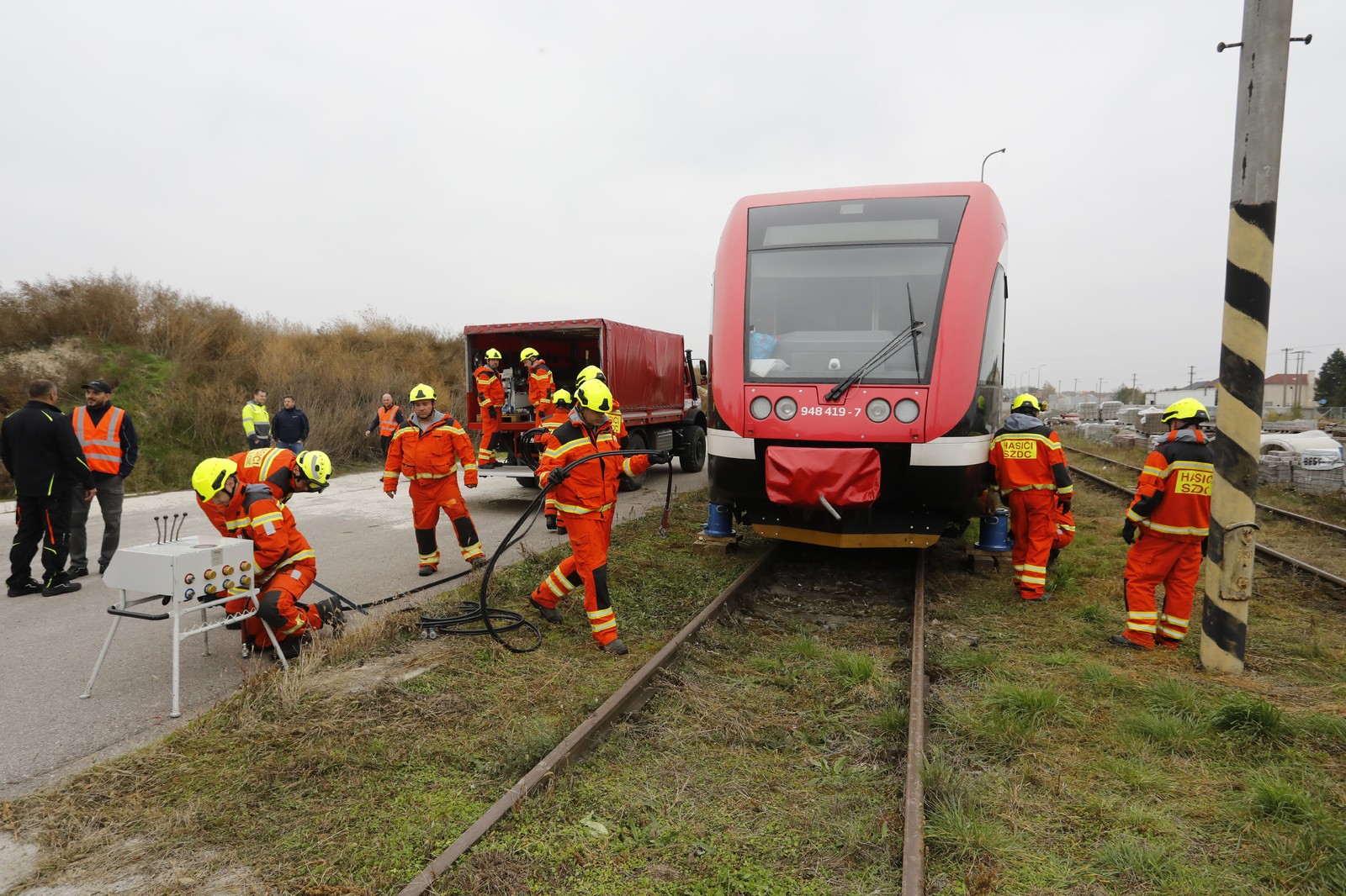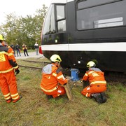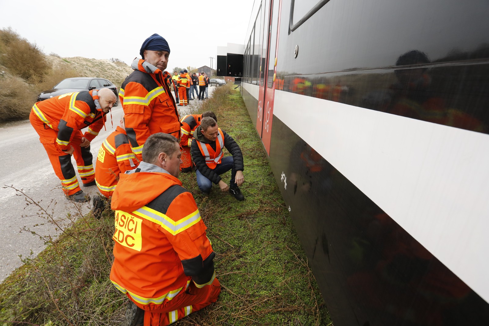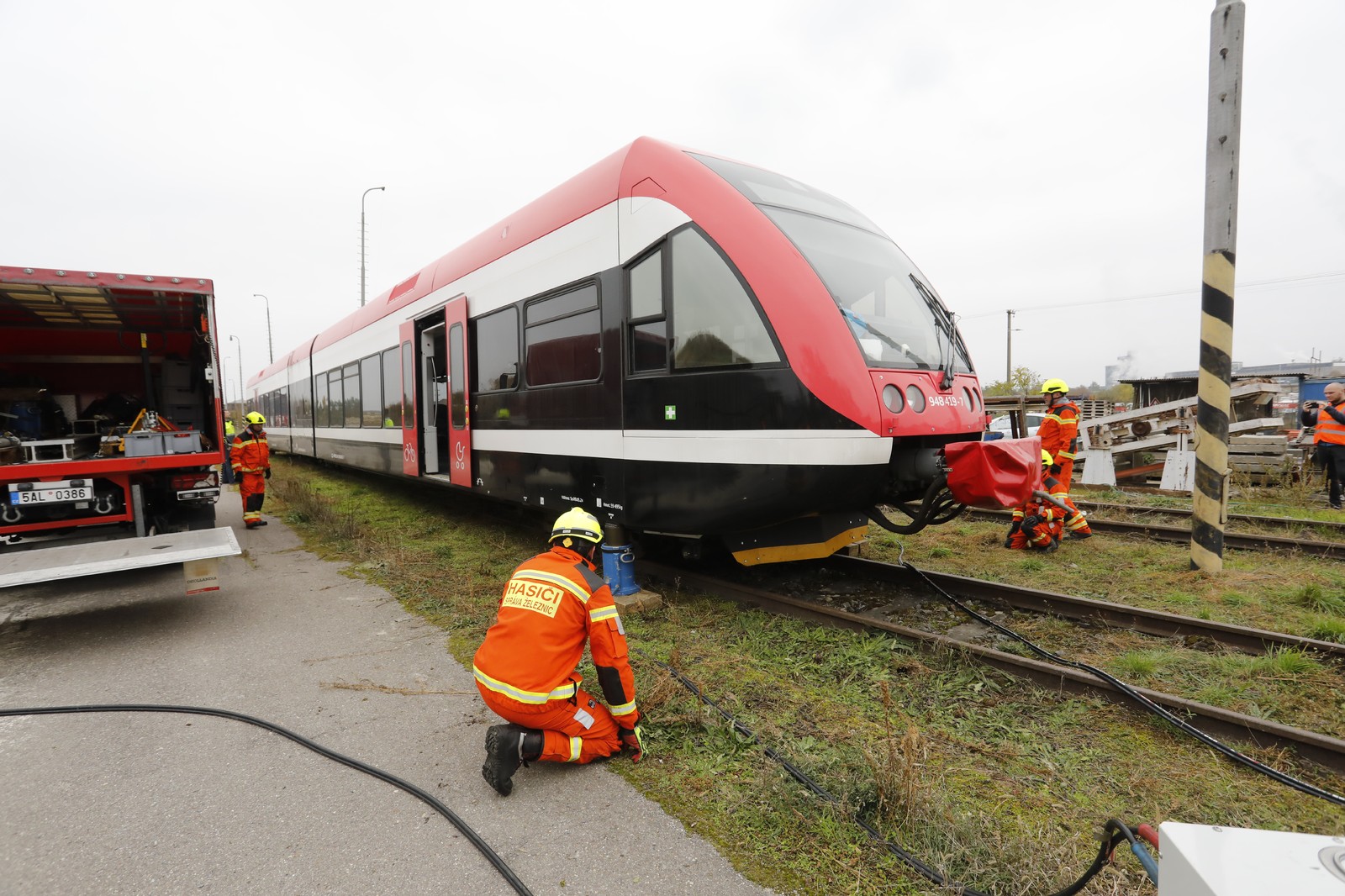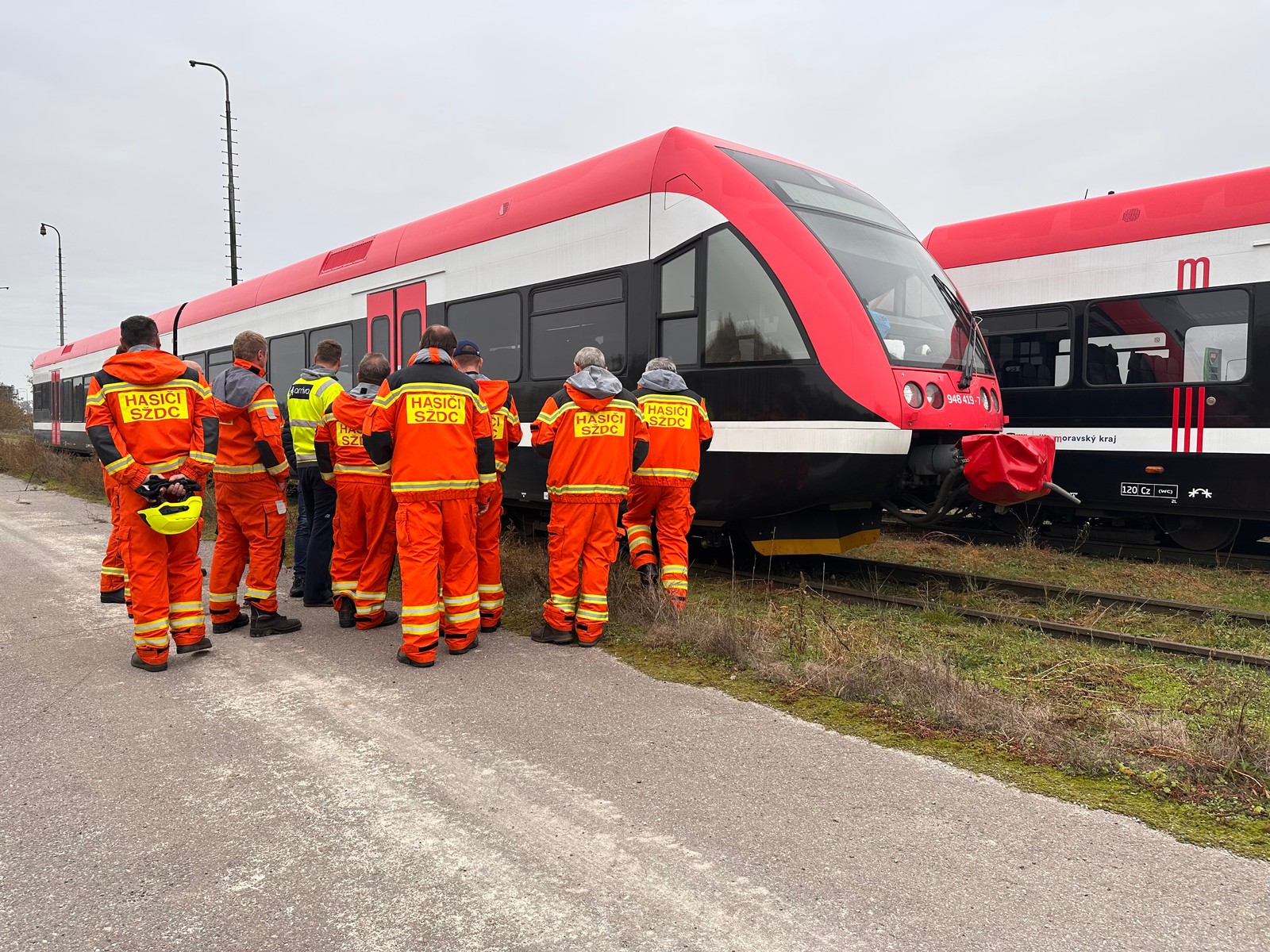 Hasiči se seznámili s naším 66 tun těžkým Stadlerem, vyzkoušeli si i nakolejování
