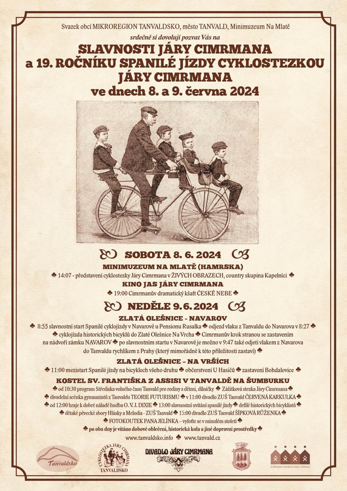 Druhý červnový víkend je v Libereckém kraji ve znamení srazu příznivců a obdivovatelů Járy Cimrmana. Už po devatenácté akci doprovodí i tradiční spanilá jízda kol.