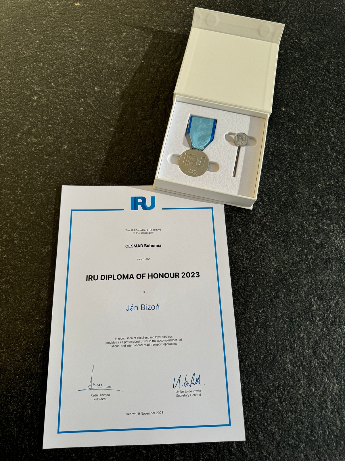 Šest dalších našich řidičů, kteří pro nás jezdí už dlouhou řadu let ve východních Čechách a na Moravě, bylo oceněno Mezinárodní unií silniční dopravy. Slavnostnímu předání prestižního ocenění IRU DIPLOMA OF HONOUR 2023 předcházela naše nominace.