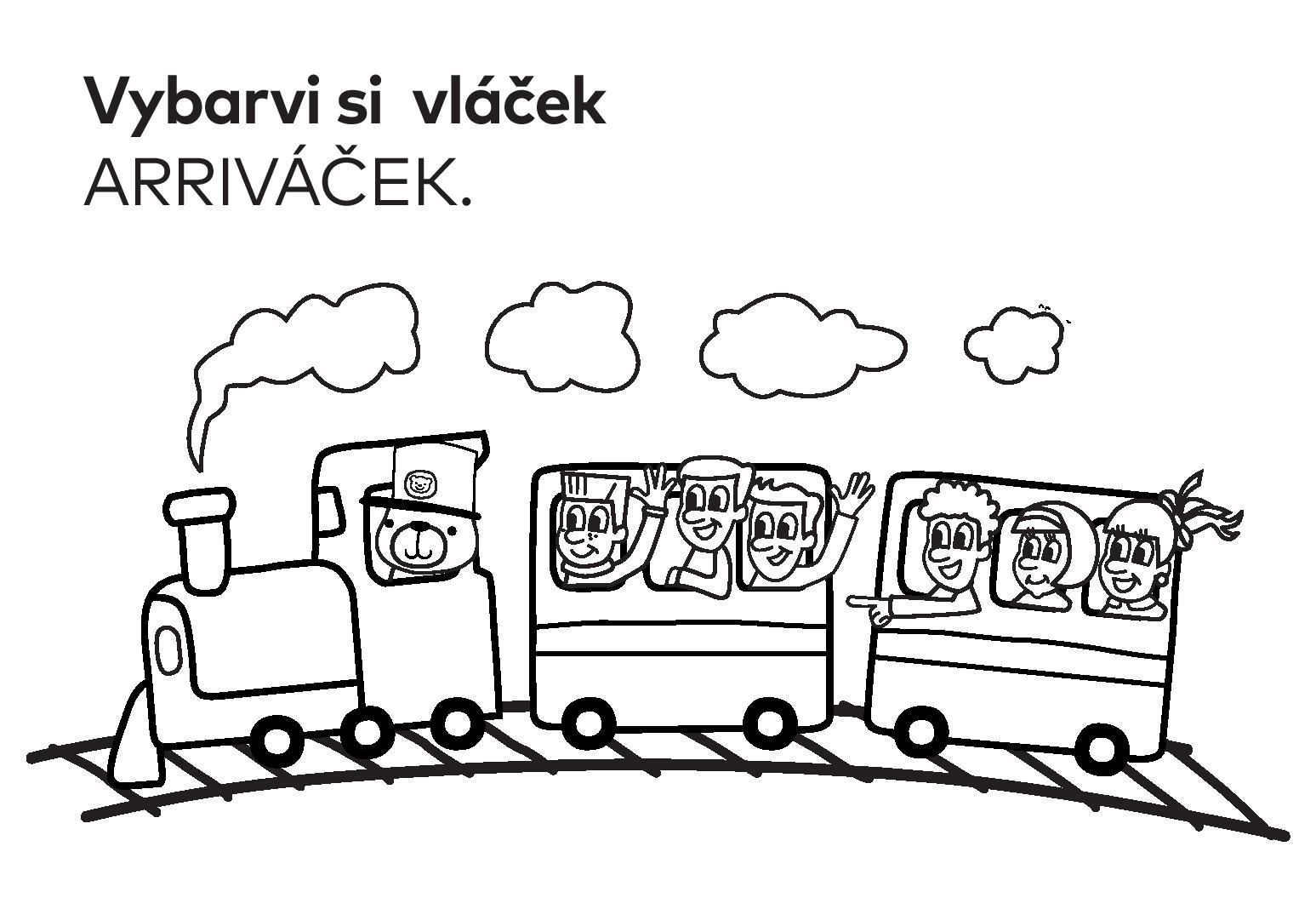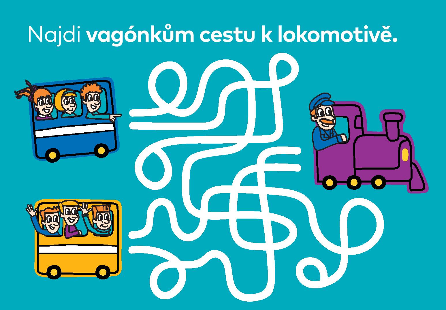 Místo křížovky mohou děti, ale klidně i dospěláci s nimi, hledat pět rozdílů na obrázku, vybarvit vláček Arriváček nebo najít správnou cestu vagonů k lokomotivě.