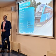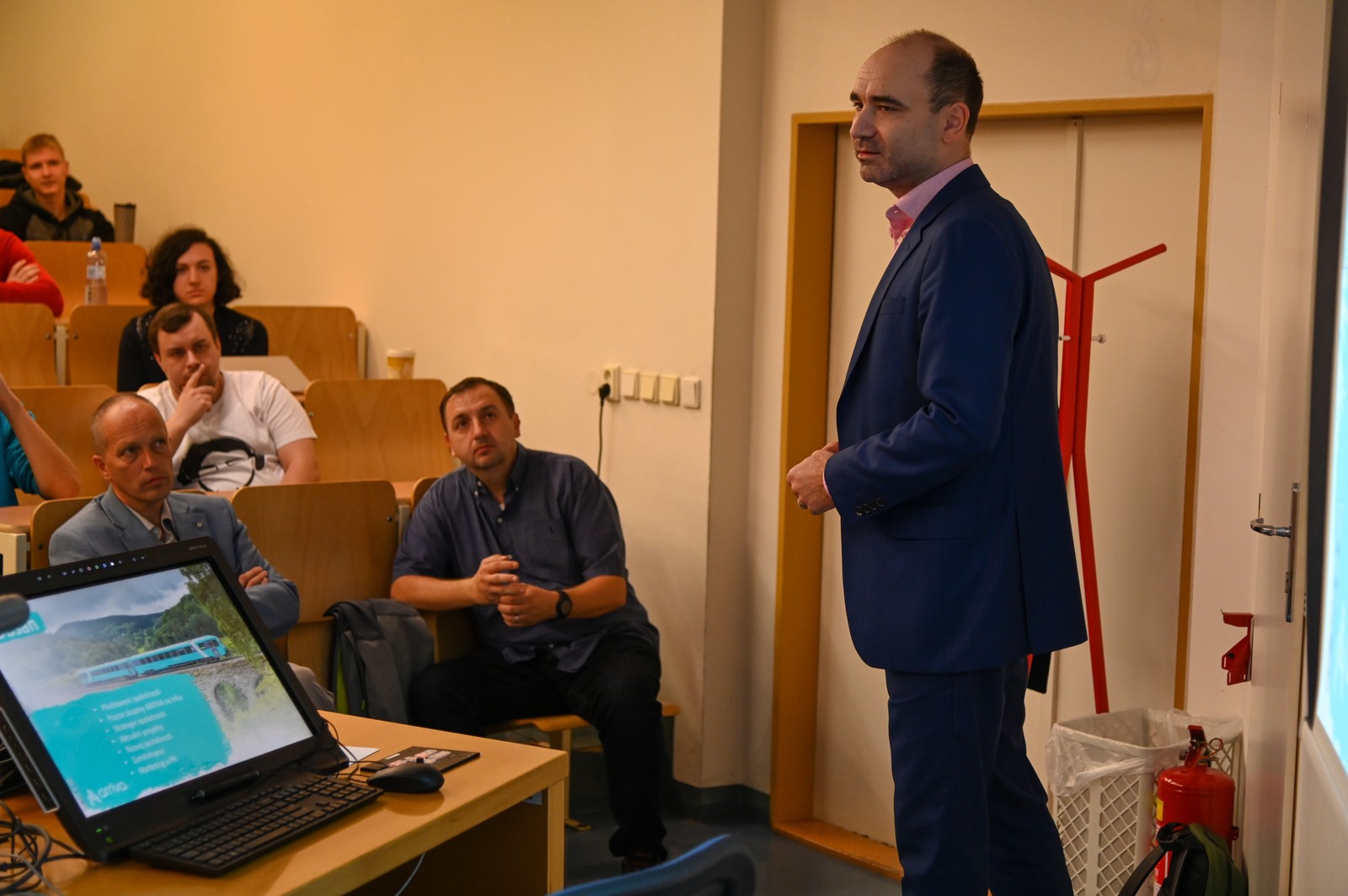 Úvodní přednášku obstaral generální ředitel Daniel Adamka. Představil naši společnost, aktuální výzvy i situaci ve veřejné dopravě v České republice. Představil naše investice do nákupu nových autobusů i vlakových jednotek, které jsou od roku 2019 do současnosti ve výši přes pět a půl miliard korun. V rámci přednášky dostaly prostor také informace o letošních přírůstcích elektrobusů v Přerově nebo mild-hybridních autobusech pro městskou dopravu v Praze. Část přednášky byla věnována i připravovaném projektu nákupu 16 elektrobusů pro MHD Kladno a vybudování rychlonabíjecí stanice v našem depu. Měli bychom tak být prvním dopravcem v republice, který bude provozovat kloubové elektrobusy v městské dopravě. Řeč přišla i na projekt využití vodíkového nebo bateriového vlaku v našem provozu na rychlíkové lince R14 od Ústí nad Labem přes Liberec do Pardubic, na kterém spolupracujeme se společnostmi Čepro a Spolchemie.