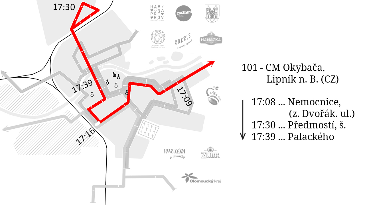 Soubory a muziky můžete v autobusech MHD vidět a slyšet v pátek 7. června mezi 17. a 18. hodinou. Konkrétně na lince 101 s vámi pojede CM Okybača z Lipníku nad Bečvou, na 103 uslyšíte domácí FS Haná Přerov, ve 104 se setkáte s polským souborem ZSPT Vladislavia a v autobuse linky 105 bude hrát přerovský CM Primáš.