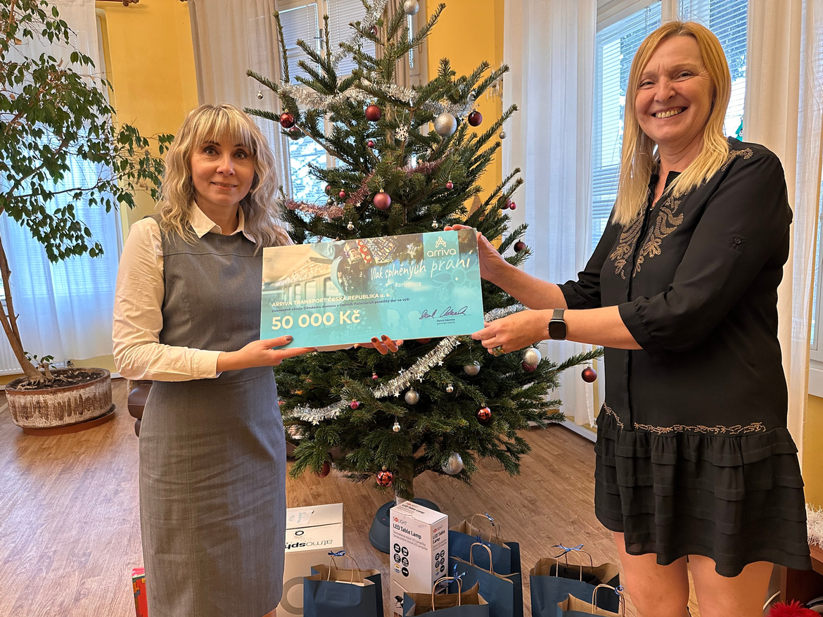 Naše personální ředitelka Lucia Kunešová přivezla do Dolních Počernic kromě dárků ještě jeden navíc, o který si děti nenapsaly. Naše překvapení z Arrivy. Peněžní dar padesát tisíc korun.