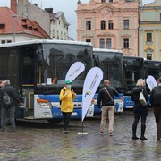 Nové autobusy jsme společně se zástupci Plzeňského kraje a organizátora dopravy POVED ve středu 10. června slavnostně představili veřejnosti na náměstí Republiky v Plzni.