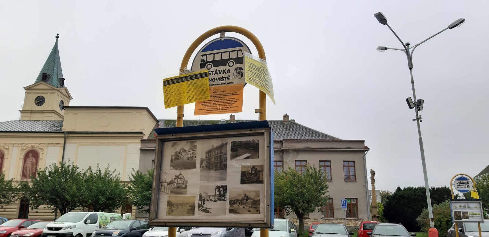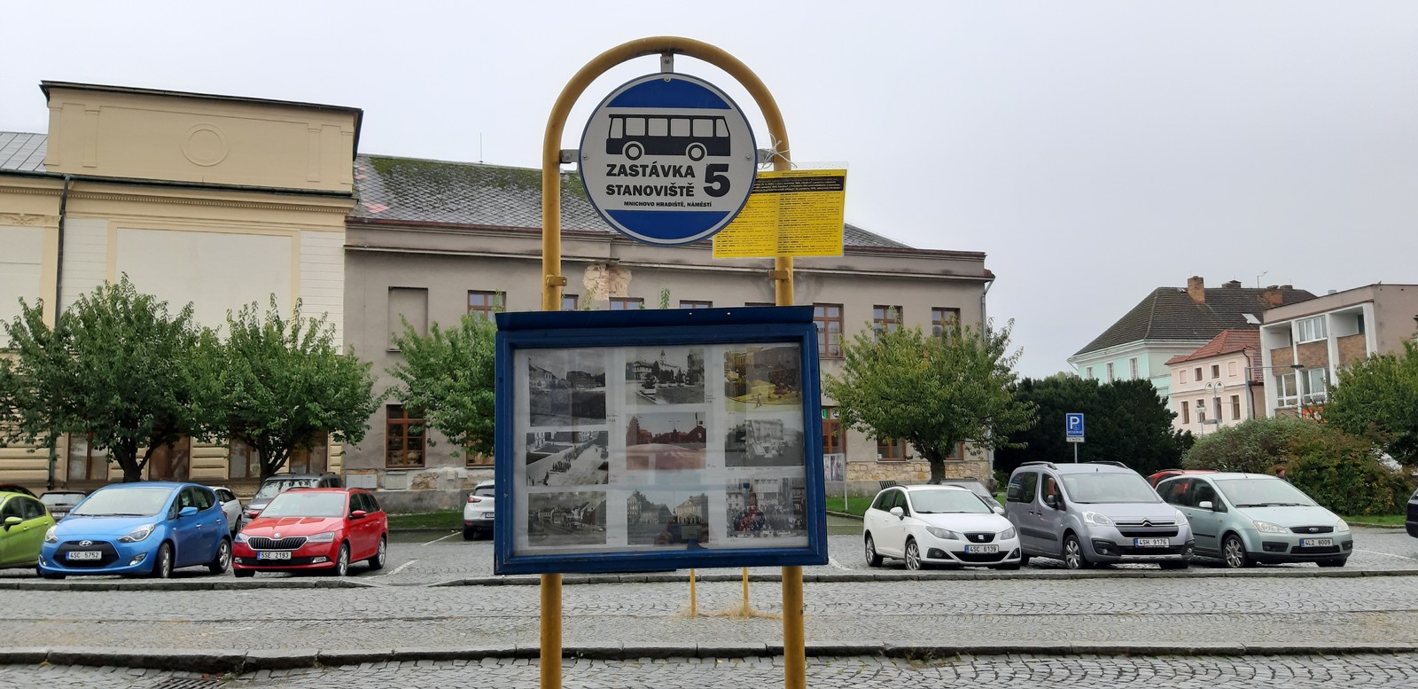 Označníky odjezdových stanovišť ale z náměstí zatím nezmizely a mají dočasně ještě jedno využití. Jízdní řády totiž nahradily fotky s důležitými momenty z historie Masarykova náměstí. K vidění je tady kromě starých snímků i jeho nadcházející nová podoba. Asi za měsíc dojde k odstranění označníků a dva z nich věnujeme mnichovohradišťské radnici pro využití v plánovaném muzeu Liazu, který je s městem neodmyslitelně spjatý.